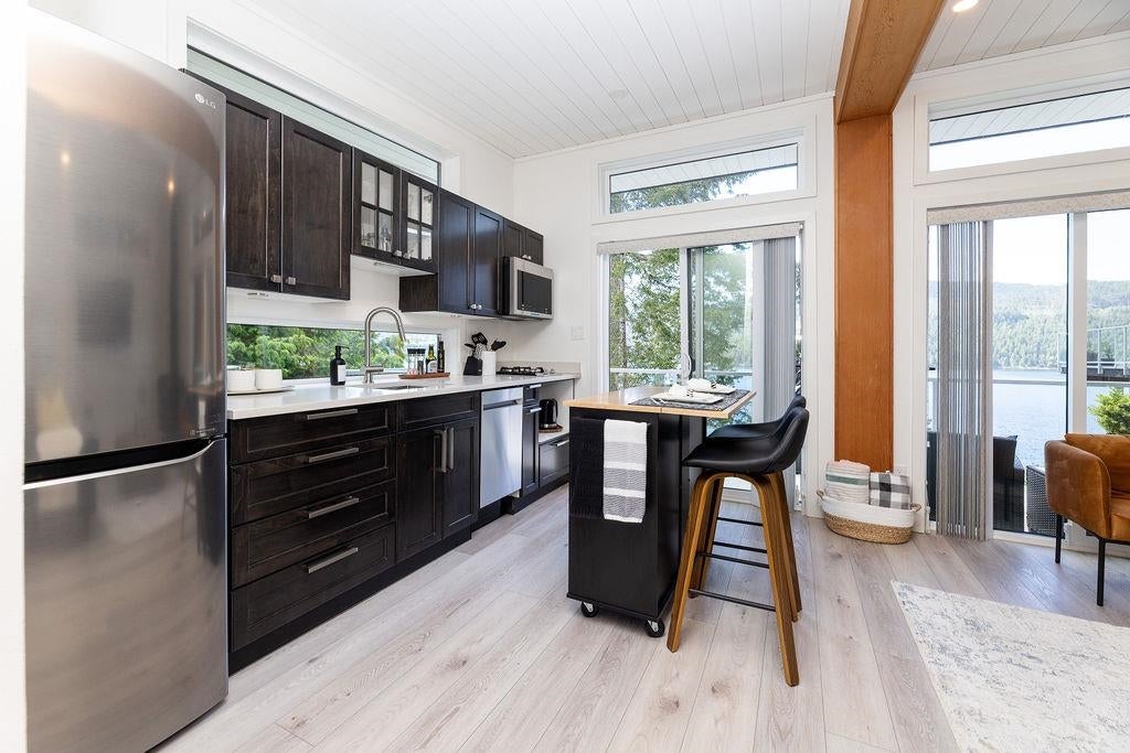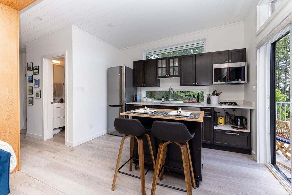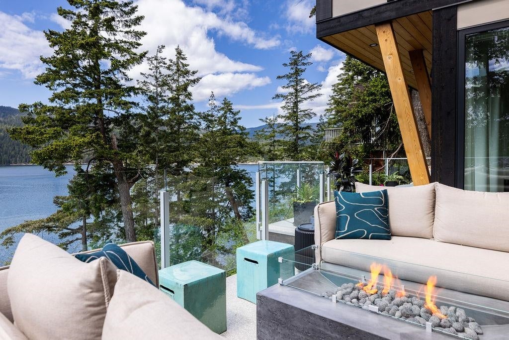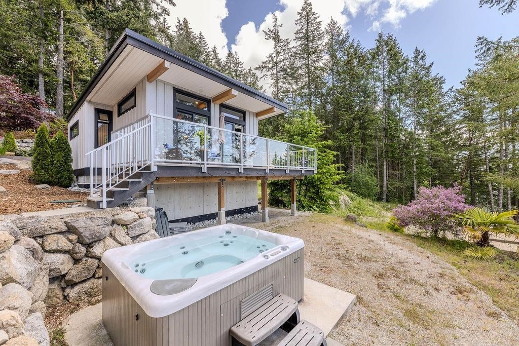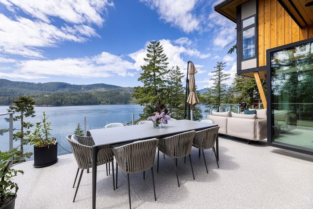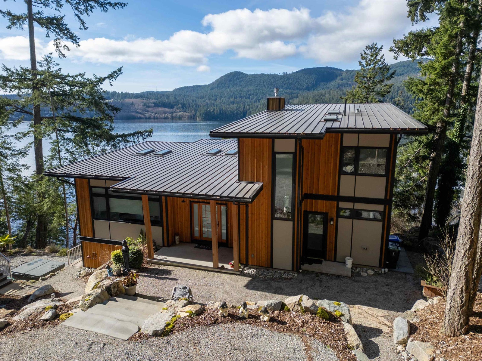 Stunning Custom-built waterfront home completed in late 2020, approx. 2,600 sq.ft. of modern living on a private 25,700 sq.ft. lot with panoramic inlet views. Thoughtfully designed over 2 levels, this 2-bedroom+ den, 3-bathroom residence features an open living plan, chef’s kitchen, expansive entertaining deck, spa-style hot tub, and quality finishes throughout including gas fireplace, heat pump, remote-controlled blinds and skylights, and built-in speaker system. Fully detached 500 sq.ft. 1-bedroom cottage currently operates as a successful Airbnb, ideal for guests or rental income. Level driveway, exceptional privacy, and striking modern design. Located close to Sechelt marina, trails, and town amenities. Only 30 minutes to Gibsons and approximately 1 hour ferry ride from West Vancouver.